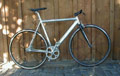 I also sort-of have a ss 'cross bike (I look like hell because I had strep throat and was seeing spots in the runup in the Jackson Park race, but I got blogged for dressing like a fred). Actually, now that I work in the work in the loop, I converted my ss 'cross bike back to a bullhorned messenger freewheeled ss...basically a bullhorned version of the above that weighs 7 pounds more, is way more bulletproof, and still has last winter's salt splattered on it, so it doesn't look like it's worth stealing. Also coming soon, Tresa's track bike...